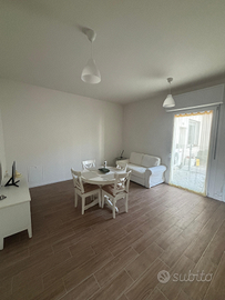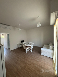 Piano terra, 57mq, composto da soggiorno con angolo cottura, disimpegno notte separato da porta scorrevole, ampio bagno con doccia e lavatrice, ripostiglio, camera da letto, piccolo spazio esterno privato. Classe energetica A4, pannelli fotovoltaici, No Gas. Completamente arredato ( il divano è un divano letto a due posti).