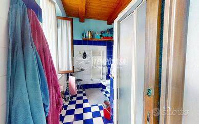 Al piano superiore si accede alla zona notte, composta da una spaziosa camera matrimoniale e da un bagno finestrato dotato di box doccia, rifinito con cura e funzionalità. Le finiture interne comprendono infissi in legno con vetro doppio, che garantiscono un buon isolamento termico e acustico, e pavimentazione in ceramica in tutti gli ambienti, resistente e facile da mantenere.