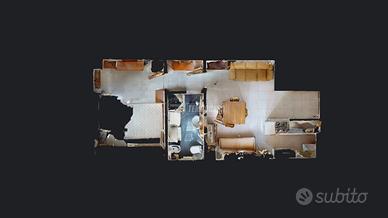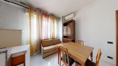 La soluzione si trova al primo piano con ascensore, e internamente è composta da un ampio ingresso arredabile, luminosissimo soggiorno con cucinotto, bagno con box doccia e una camera matrimoniale con accesso su balcone e relativa vista.