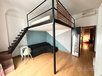n VIA SAVONA n° 108 vicinissima alla metro Tolstoj della M4 e all'Accademia di comunicazione, affittasi bellissimo bilocale / loft completamente arredato a nuovo e così composto: cucina abitabile, ampio soggiorno, zona notte soppalcata (con un letto matrimoniale e un letto singolo), balcone con affaccio su via Savona, e bagno finestrato con doccia e lavatrice.