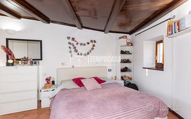 Salendo al primo piano si accede alla zona notte, composta da una camera matrimoniale e da un bagno finestrato completo di box doccia.