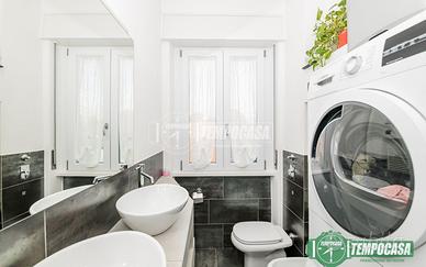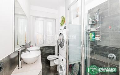 Il bagno, completamente rinnovato, presenta finiture moderne e una palette cromatica raffinata.