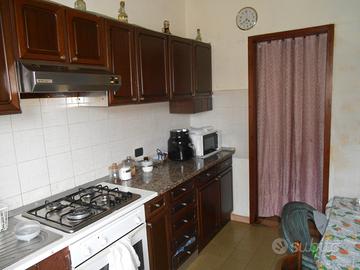 In stabile medio signorile del 1974 in via Gravellona, 50, condominio con ampio parco condominiale con fermata dell'autobus 4 (che porta alla stazione dei treni) fuori dallo stesso, nelle vicinanze del nuovo Palazzetto dello Sport (Pala Elachem) vicino alla frazione Piccolini, appartamento sito al piano rialzato di 80 mq commerciali composto da ingresso, soggiorno con finestra e porta finestra (dalle foto ora utilizzato come camera doppia), cucina abitabile, ampia camera matrimoniale, bagno finestrato, balcone angolare, altro balcone, cantina e box all'interno del Condominio della stessa proprietà di mt. 5,13 x 2,69 con larghezza minima d'ingresso di mt. 2,10 ed altezza minima d'ingresso di mt. 1,86 compreso nel prezzo di richiesta. L'appartamento è in buono stato conservativo. Esposizione interna sul cortile, ma con vista anche verso l'esterno. Pavimenti in ceramica. infissi delle finestre in legno con vetro singolo. Altezza interna del soffitto di mt. 3,20. Impianti interni certificati. Riscaldamento a fan coills ed acqua calda centralizzati. Spese condominiali mensili di ? 230,00. Stabile in generale tenuto bene con piccolo campetto da calcio arrangiato all'interno ed immerso nel silenzio. A breve distanza dalla scuola elementare ed a 10 minuti a piedi dalla scuola materna. Supermercati Carrefour grande e piccolo raggiungibili comodamente a piedi. Appartamento libero al rogito in tempi molto rapidi.