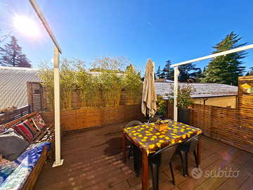 L'appartamento ha inoltre una splendida TERRAZZA finemente arredata di 20 mq con esposizione sud-ovest, ideale per momenti di relax e socializzazione e un BALCONE di servizio.