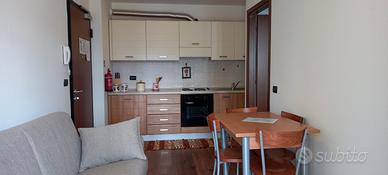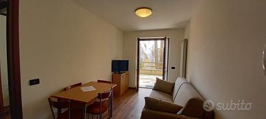 Appartamento composto da camera matrimoniale con ampio armadio a ponte, soggiorno con angolo cottura lineare grande, bagno finestrato con ampia doccia. Arredato completamente (compresa lavatrice). Posizionato al piano terra gode di una bellissima veranda ad angolo . Garage centrale comodo incluso nel prezzo.
