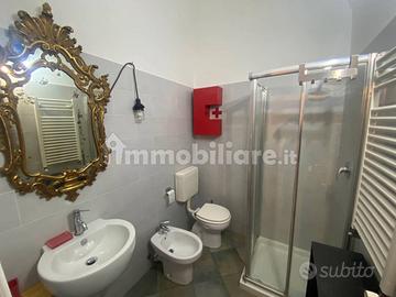 Il bagno è moderno e funzionale, dotato di box doccia, bidet e termo arredo.