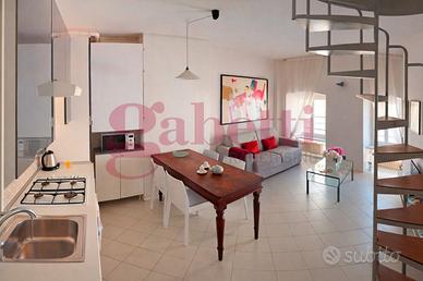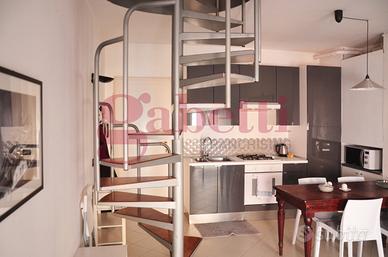 L'appartamento si compone al primo livello da zona giorno con cucina a vista. Una scala a chiocciola conduce al piano superiore che è composto da una comoda camera da letto e dal bagno con doccia in nicchia. L'immobile viene locato arredato.