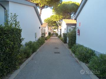 Vendesi due quote del villaggio Orizzonte (4 stelle), che danno diritto all'uso esclusivo di un villino in muratura posto al piano terra con ingresso indipendente. Il bungalow è un bilocale di circa 35 mq, con giardino e veranda esclusiva dove è posto un tavolo per pranzare all'aperto. Può ospitare fino a 4/5 persone ed è composto da zona soggiorno-cucina con letto estraibile, camera matrimoniale. Il bagno è molto funzionale e suddiviso in tre parti: lavanderia e doccia, lavandino e wc separati. Il bungalow è dotato di climatizzatore sia per la stagione estiva che invernale, telefono, tv satellitare, wi fi. Il villaggio é situato tra Follonica e Piombino, zona parco costiero della Sterpaia, è aperto anche nel periodo invernale, si trova a circa 500 metri dal mare, raggiungibile con trenino del villaggio o in bicicletta tramite pista ciclabile. Particolarmente indicato per famiglie e bambini, interamente recintato. Da giugno a settembre è sempre presente l'animazione con mini club, attività sportive, spettacoli serali ecc... Nel villaggio sono presenti: Infopoint, noleggio biciclette, posti auto, due zone con sei piscine (Nord e Sud) di cui due da 25 metri, parco giochi per bambini, campo da beach volley, da calcetto, da basket, da tennis e da padel, colonnine ricarica auto elettriche. Vi sono inoltre due bar-ristoranti, un market, un bazar, un centro benessere e un parrucchiere. La spiaggia è sia libera che attrezzata. Per il soggiorno è prevista una quota annuale che comprende tutto; non c'è altro da pagare, nemmeno IMU e manutenzioni. Il villino è stato completamente rinnovato a primavera 2025.