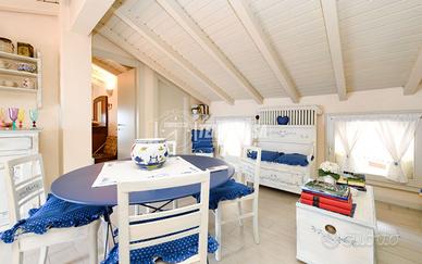 L'appartamento si apre su una luminosa zona giorno con cucina a vista, da cui si può ammirare un panorama aperto e suggestivo sul lago. La zona notte comprende una camera da letto matrimoniale e un bagno finestrato.