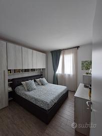 Composta da zona giorno con cucina abitabile, camera da letto, bagno finestrato, balcone, garage privato di 16mq pavimentato, 2 due posti auto riservati, posto moto condominiale, tutto all'interno dello stabile.