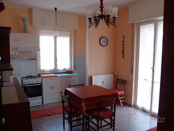E' composto da soggiorno con cucina completamente equipaggiata, camera da letto (4 posti), corridoio, bagno con lavatrice, ripostiglio, ampio balcone angolare a doppia esposizione (sud-est) con tenda da sole avvolgibile. Dotato di riscaldamento centralizzato con valvole termostatiche nei singoli ambienti, è molto luminoso anche nei mesi invernali. Principali servizi nelle vicinanze dell'immobile: stazione ferroviaria, taxi, fermata bus extraurbani, negozi di prima necessità. Passeggiata a mare e spiaggia più vicine a 400m.