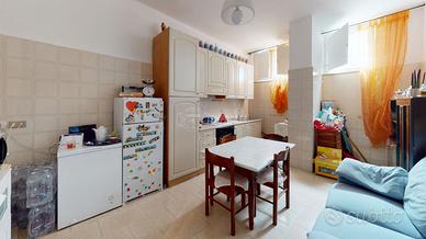 L'appartamento, accatastato come A/2, ha una metratura di 100 MQ, è sito al piano seminterrato con ingresso da un cancello condominiale ed è cosi disposta: ingresso in disimpegno, soggiorno/cucina, bagno con vasca e sanitari poggiati e due camere da