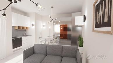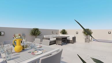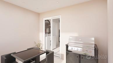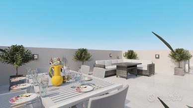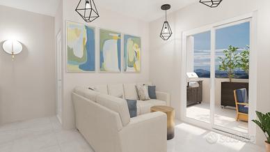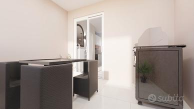 Center Immobiliare, propone in vendita in esclusiva a Monserrato nei pressi capolinea della Metro un ottimo Bivano al 2° piano di nuova costruzione, con terrazza sovrastante di 41 mq di proprietà esclusiva. L' appartamento è dotato di ascensore e posto auto. Il nostro ingresso è su un accogliente e luminoso soggiorno con l' angolo cottura, comunicante con un balcone dal quale si può accedere attraverso una scala alla terrazza sovrastante di proprietà, successivamente, attraverso un disimpegno, accediamo al bagno e alla camera matrimoniale. Le rifiniture sono personalizzabili cosi come eventuali modifiche interne. Gli appartamenti saranno dotati di impianto fotovoltaico, pompe di calore.
