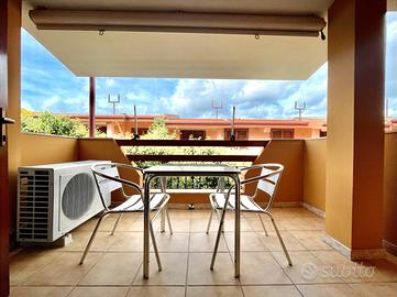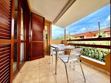 VILLASIMIUS - In zona residenziale pianeggiante e vicinissima ai servizi, all'interno di uno splendido complesso ricco di verde e ottimamente curato, appartamento bilocale al piano primo con veranda.