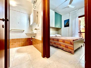 Nell'ala destra dell'immobile trovano spazio, separati da disimpegno, il bagno con doccia, e la camera da letto con ingresso indipendente e di dimensioni sufficienti ad accogliere un letto matrimoniale.