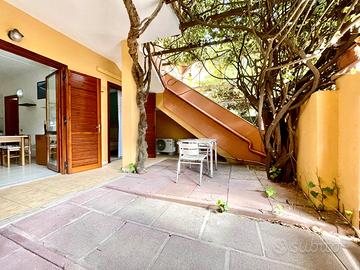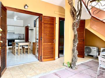 VILLASIMIUS - In via Nievo, in zona residenziale pianeggiante e vicina ai servizi, all'interno di uno stabile ben costruito e ottimamente curato, bilocale al piano terra con ampio spazio esterno.