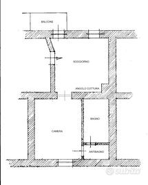 L'appartamento è composto da ingresso, soggiorno con angolo cottura e balcone, una camera, bagno con antibagno.