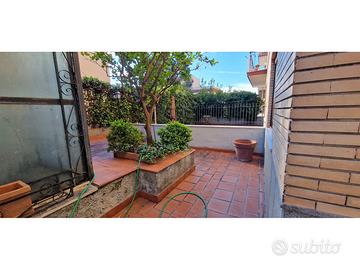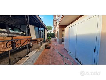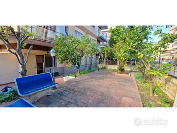 L'abitazione è posta al piano terra e gode di un meraviglioso giardino di pertinenza esclusiva parte pavimentato e parte ad aiuole. Lo spazio esterno avvolge l'intero appartamento per due lati garantendo così privacy e autonomia anche grazie all'entrata indipendente di cui è dotato. Internamente di ampia metratura ben divisa e confortevole troviamo un ampio ingresso di accoglienza finestrato, salone, cucina abitabile a vista verso il salone, due ampie camere, due bagni. Vista la vicinanza a tutti i servizi e la comoda metratura si presta alla divisione in due unità abitative. Il salone e la cucina hanno l'ingresso diretto al giardino, questo permette di usufruire ottimamente del meraviglioso spazio esterno. Inoltre, lo spazio esterno è arricchito da ripostigli estremamente comodi.