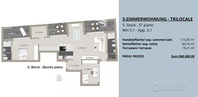 In vendita abbiamo un trilocale, non convenzionato, con vista fantastica nel centro di Bolzano. (vedi planimetrie)