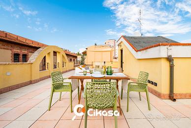 Al quarto piano, raggiungibile tramite scala condominiale si apre il LASTRICO SOLARE di 73 mq, di proprietà esclusiva, che offre una bellissima vista panoramica sul mare e sul colle di Bonaria: uno spazio perfetto per cene all'aperto, momenti di relax e solarium.