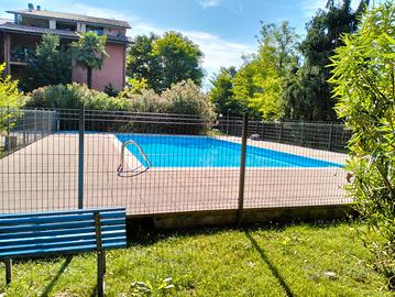 Completano la soluzione un terrazzo, un giardino condominiale, una piscina e un parco giochi interno.