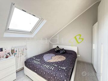 Limmobile si apre su un luminoso soggiorno con cucina a vista, una camera matrimoniale, un bagno, una camera armadi e un pratico vano aggiuntivo di circa 26 mq, sapientemente sfruttato per creare una seconda camera da letto e un bagno.