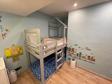 La casa, completamente ristrutturata con finiture di pregio, è pronta per essere abitata e si presenta così: Piano terra: luminosa zona giorno con ampio salone, cucina abitabile, bagno e accesso diretto al giardino, ideale per momenti di relax e convivialità. Piano seminterrato: camera matrimoniale e secondo bagno con raffinata cabina armadio, cameretta. Ingresso secondorio collegato al box.