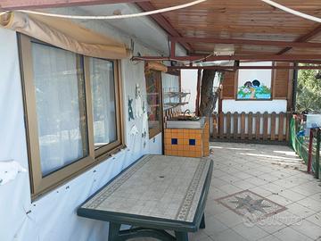 Il bungalow, sebbene abitabile, sarebbe a mio avviso da ristrutturare, sostituendo l'attuale roulotte + casetta di legno con una casa mobile (bungalow). In tal caso è possibile aumentare la superficie interna fino a 26-28 mq, non modificando la larghezza e lunghezza della terrazza esterna (ma impegnando altri spazi del lotto al momento di fianco il bungalow).