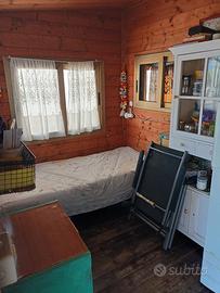 Il bungalow è composto da una roulotte e da una casetta in legno addossata alla roulotte, con zona giorno e bagno, con 4 posti letto totali. La superficie coperta è di 20 mq, ma la superficie totale del lotto è di 50 mq.