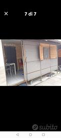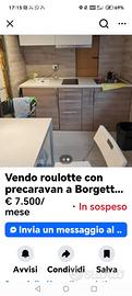 Vendo Roulotte con pre-ingresso in casetta di legno a pochi passi da mare e dal centro di Borghetto. Alloggio estivo, aperto da Aprile a Settembre, adatto per 4 persone, in Bungalw e' composto da camera matrimoniale e salottino con angolo cucina. Fornito di aria condizionato.