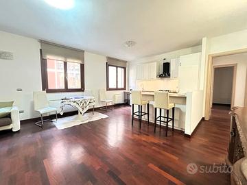 Tra la Via Bellini e la Via Pergolesi, in condominio di recente costruzione si propone arredato appartamento di 90 mq interni con finiture in parquet e riscaldamento autonomo con termosifoni, composto da ingresso-sala, cucina a vista, due camere da letto, bagno, verandina, posto suto interno e cantina di oltre 20 mq.