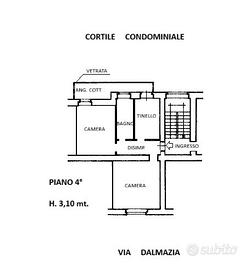 Cagliari nella via Dalmazia, in prossimità di via La Vega, a circa 400 metri dalla Via Manno e via Garibaldi, facilmente raggiungibili a piedi, nel centro di Cagliari, molto apprezzato dai turisti per la posizione strategica, trovandosi nelle vicinanze di gran parte dei monumenti storici della città, vicino alle principali Università di Cagliari e molto apprezzata dagli studenti universitari, proponiamo la vendita di un Trivano in buonissimo stato, molto luminoso con esposizione a est e ovest, della superficie netta di mq. 70 e superficie commerciale di mq. 81, esposto su due lati al piano quarto e ultimo senza ascensore e possibilità di poterlo installare facilmente, facente parte di un condominio curato con ampi spazi aperti condominiali e molto silenzioso. L'abitazione è composta da un ingresso, tinello con zona pranzo, il cucinotto sulla veranda chiusa sanata, due camere ampie da letto doppie di mq. 24 e mq. 16, un bagno con finestra e un posto auto assegnato all'abitazione nel cortile condominiale. Nel bagno è presente la centralina dell'impianto idraulico in rame con le linee sezionate per ciascun sanitario, sono presenti due pompe di calore per riscaldare e raffreddare gli ambienti. Le spese condominiali, si aggirano a circa 38 euro mensili. L'APE, Attestazione di Prestazione Energetica in classe G.