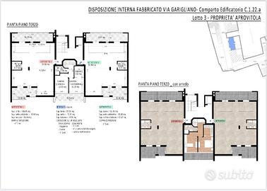 Disponibili immobili al piano rialzato con ampio spazio esterno, primo, secondo e terzo piano e disponibili anche tipologie duplex disposte su due piani (piano giorno e piano notte).