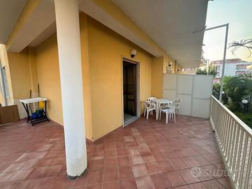 Affitasi ampio appartamento in prossimità della spiaggia, 2 camere da letto, sala pranzo con angolo cottura, bagno. giardino.