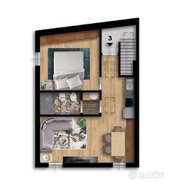 questa soluzione è al terzo ed ultimo piano, composta da soggiorno con angolo cottura, camera da letto e bagno, possibilità di posto auto nelle vicinanze.