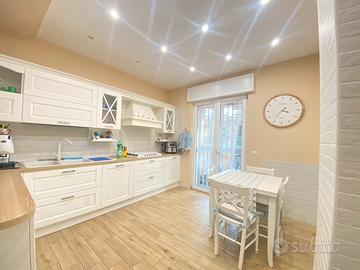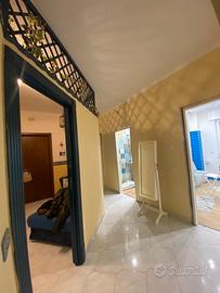 Ingresso in ampio salone, cucina abitabile, due camere da letto, due bagni, lavanderia, doppia esposizione con ampie balconate terrazzate ed annesso vi è un DEPOSITO di 270MQ circa attrezzato di ufficio e bagno, il tutto con altezza di 4METRI.