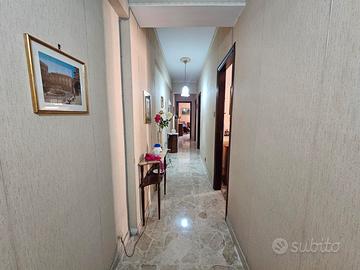 La distribuzione interna è tipica dell'epoca di costruzione con un ampio ingresso, una comoda camera sulla destra e corridoio che disimpegna tutte le altre stanze; la cucina è annessa al soggiorno, con doppia uscita sul balcone; il bagno dotato di un ampio box doccia e di finestra è stato ristrutturato recentemente, un grande ripostiglio utilizzabile anche come piccola cameretta, ed un spaziosa camera da letto.