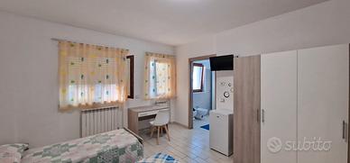 A Lanciano, in zona Viale Cappuccini, proponiamo in locazione una stanza con bagno privato , con ambienti comuni, quali cucina, sala da pranzo, terrazzo e lavanderia, all'interno di un grande appartamento. La stanza è dotata di un letto matrimoniale, un piccolo frigo, una tv, riscaldamento autonomo, aria condizionata, un armadio, una sedia e una scrivania. Sono compresi nel prezzo i consumi di acqua, luce, metano, l'uso 4 volte al mese di asciugatrice e lavatrice, oneri condominiali, connessione wi-fi e posto auto. Il prezzo è valido per 1 persona. Si valutano contatti mensili, per ulteriori informazioni non esitate a contattarci, Vi Aspettiamo.