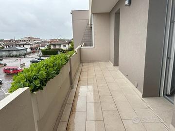 CAMPAGNA LUPIA Luminoso Appartamento posto al Piano Secondo di una palazzina appena restaurata con SuperBonus 110%, e composto da soggiorno/cucina, disimpegno, 2 bagni, 2 camere, 2 terrazze. Garage al Piano Interrato. Fotovoltaico, serramenti e caldaia nuovi.