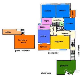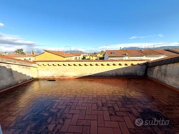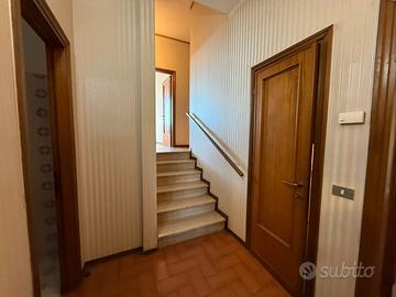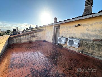 Nella tranquilla zona San Giusto, ampio e luminoso appartamento 5 vani duplex di 110mq, situato al primo ed ultimo piano di una bifamiliare. L'immobile è composto da un ingresso che conduce al soggiorno, spazioso e ben illuminato, con uscita su un comodo terrazzo, una cucina abitabile anch'essa con accesso alla terrazza ed un bagno finestrato. Salendo sei scalini si accede alla zona notte, dove sono presenti 3 camere da letto tutte grandi e luminose di cui una con terrazzina privata, un secondo bagno con finestra ed un ripostiglio. Completano la proprietà una soffitta in parte praticabile, una terrazza a tasca abitabile ed un garage di 20mq nel seminterrato e collegato internamente da scala a chiocciola. Da rimodernare. Riscaldamento Termo/singolo ed aria condizionata. Libero subito. Classe energetica in elaborazione. RIF. 15/0836