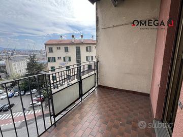 Palazzina dotata di ascensore e area verde condominiale ubicata in zona servita. Luminoso e panoramico piano medio con esposizione su tre lati. Corridoio d'ingresso, soggiorno con uscita al terrazzino, cucina abitabile con veranda. Tre camere da letto (di cui una con uscita al terrazzino), bagno finestrato con vasca, wc finestrato. Ripostiglio e cantina. Porta blindata, climatizzatore, riscaldamento autonomo, interni da rimodernare. C.E.: In fase di definizione