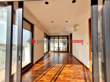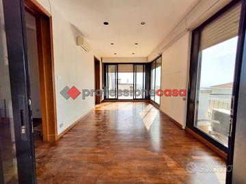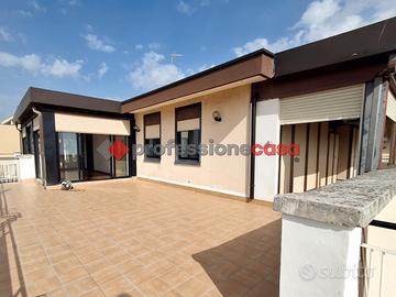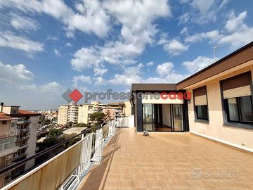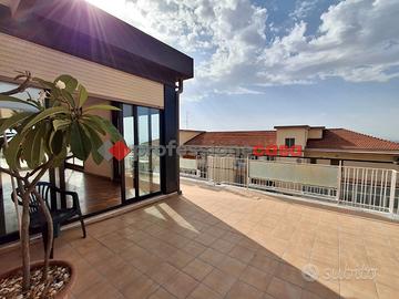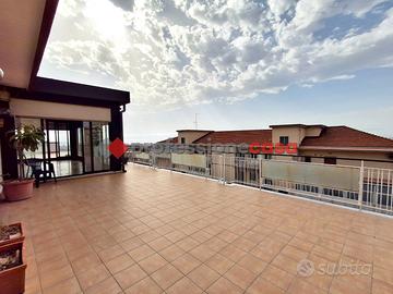 Professionecasa Paesi Etnei propone in vendita nella zona di Canalicchio, a pochi passi da Via Novaluce, Via Sgroppillo e dalla circonvallazione, luminoso e panoramicissimo attico dotato di terrazzi e giardino d'inverno, situato su Via Nuovalucello, al sesto ed ultimo piano di un edificio con ascensore. L'immobile, della metratura di circa 220 mq, si apre con un ampio disimpegno, seguito da un salone doppio con camino, sala da pranzo, angolo cottura, tre camere da letto, doppi servizi, lavanderia, ripostiglio e armadi a muro. L'attico è dotato di un ampio terrazzo di circa 100 mq con vista panoramica su mare ed Etna, grazioso giardino d'inverno, due balconi e due ulteriori verande anch'esse panoramiche. L'appartamento, in ottime condizioni, è luminoso e ben esposto, ed è fornito di riscaldamento autonomo e predisposizione per l'installazione di climatizzatori. Possibilità di garage in acquisto separato. Posti auto liberi all'interno del residence. APE in fase di rilascio.