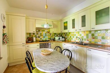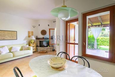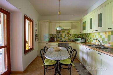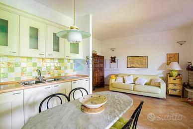 ampio soggiorno luminoso con camino, perfetto per vivere la casa in ogni stagione, cucina a vista completa di tutti gli elettrodomestici, camera da letto matrimoniale accogliente e riservata, bagno finestrato con doccia,