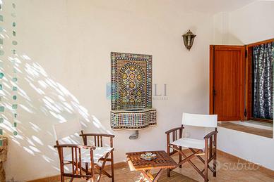 veranda coperta ideale per pranzi all'aperto e momenti di relax, giardino privato e corte d'ingresso, che garantiscono privacy e comfort.