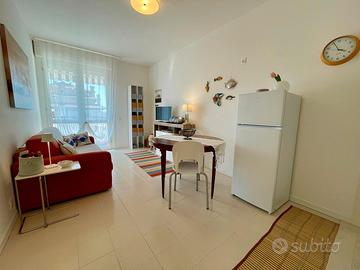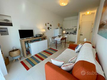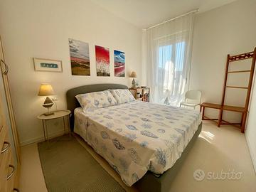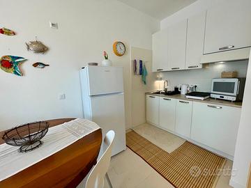 L'appartamento, mai locato e da sempre utilizzato esclusivamente dai proprietari, si compone da ingresso su soggiorno con angolo cottura, camera matrimoniale (con possibilità di terzo letto singolo), bagno con doccia in nicchia e luminosissima terrazza abitabile con vista aperta sulla località e parzialmente sulla darsena.
