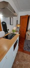 Ingresso su soggiorno e cucina open space, nella zona notte posto letto matrimoniale e bagno finestrato