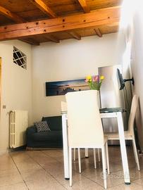 L'appartamento di 75mq è composto da un salone, un corridoio da dove si può accedere ad una corte privata di circa 16 mq, una cucina con travi a vista, un bagno di buone dimensioni e un comodo ripostiglio/lavanderia. Completa l'appartamento una stanza matrimoniale al primo piano raggiungibile tramite una scala a chiocciola in ferro battuto.