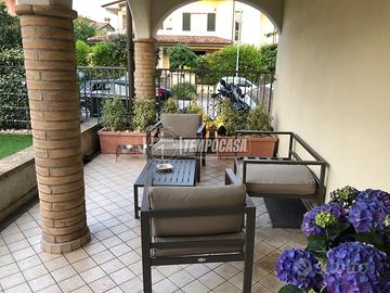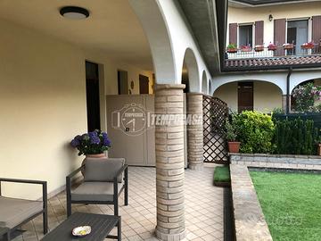 Al PIANO TERRA l'ingresso avviene attraverso un cortile privato con portico, perfetto per momenti di relax all'aperto e per accogliere amici e familiari in un contesto riservato.