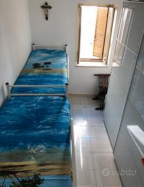 Camera con 4 posti letto. Bagno .Ci sono lenzuola e asciugamani con ricambi.