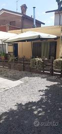 casa bifamiliare appartamento al primo piano con entrata indipendente di 100 mq due camere matrimoniali, salotto con camino, soggiorno open space con cucina ,bagni uno,balconi uno,climatizzato, riscaldamento autonomo, garage uso tavernetta di 65mq arredato con camino e bagno , area cortiva di 400mq con casetta in legno ,sito sulla via principale di Masi Torello comodo a tutti i servizi e fermate autobus